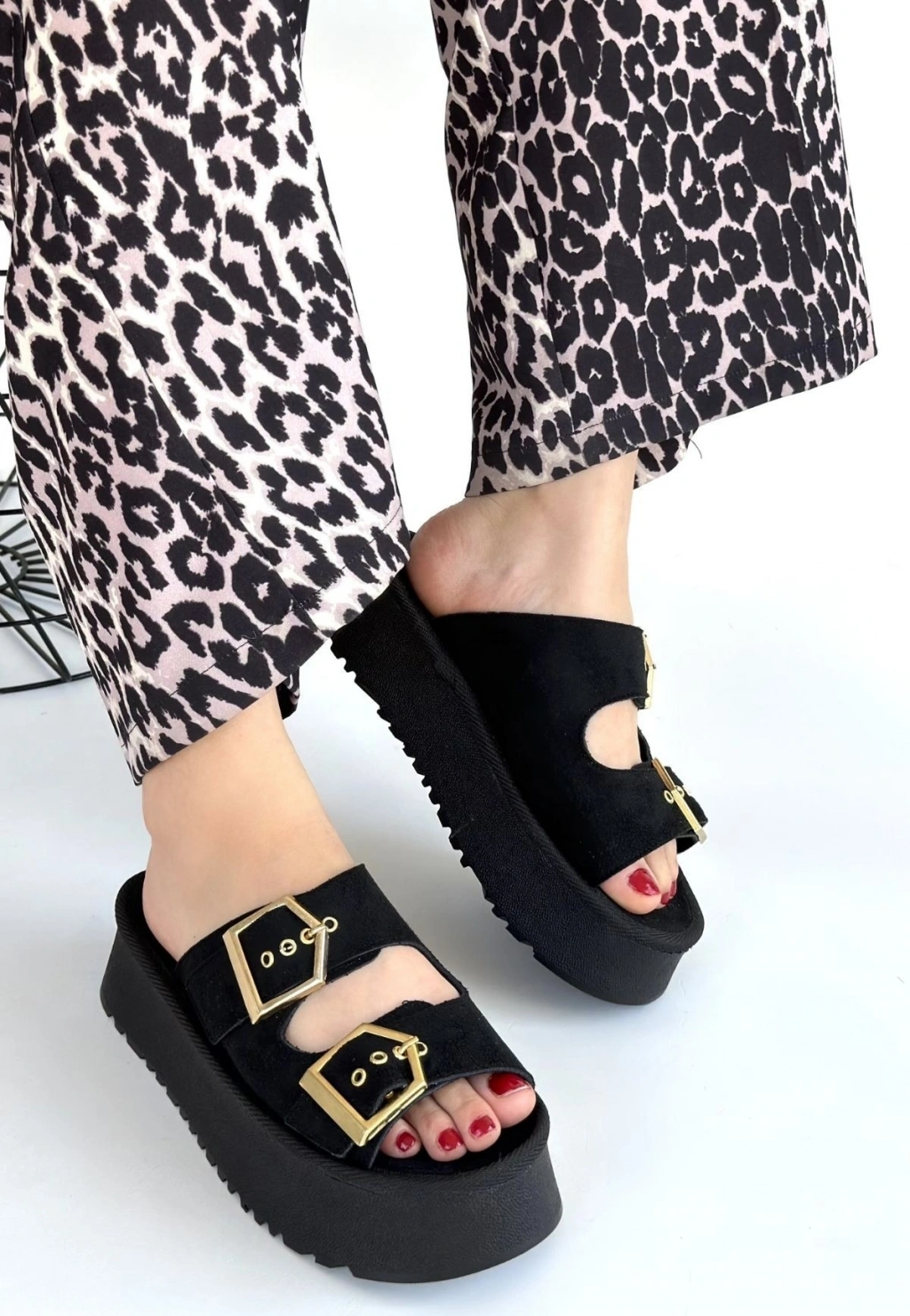 Detay: Çift Tokalı Terlik İçi Dışı Süet