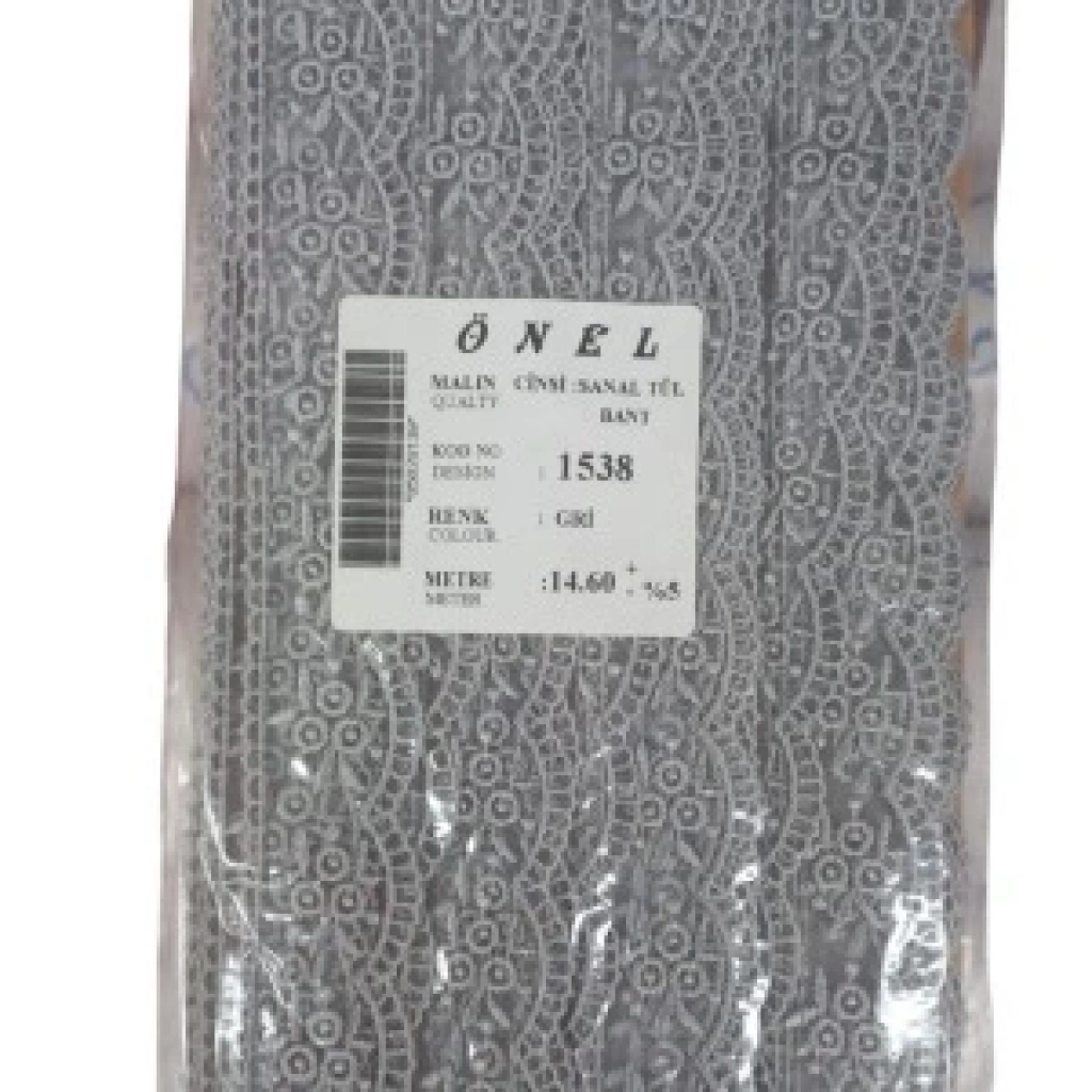 Dantel Polyester Sanal Tül Bant Gri 14,60 Metre En 3 Cm On-1538-g