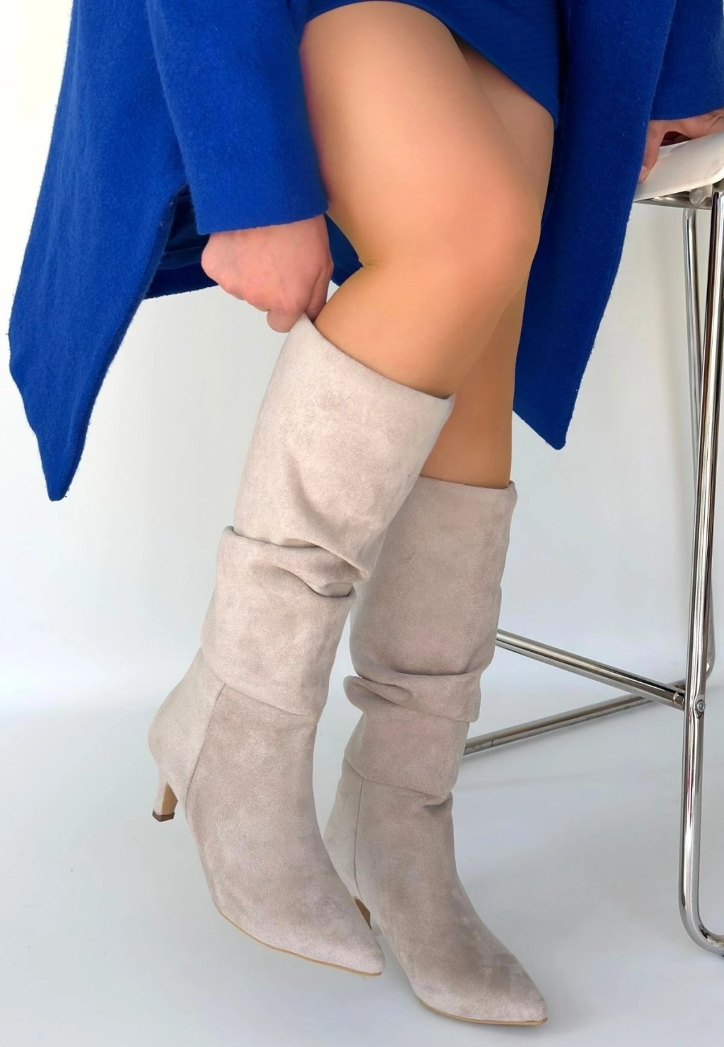• İwon Bej Süet Körüklü Çizme