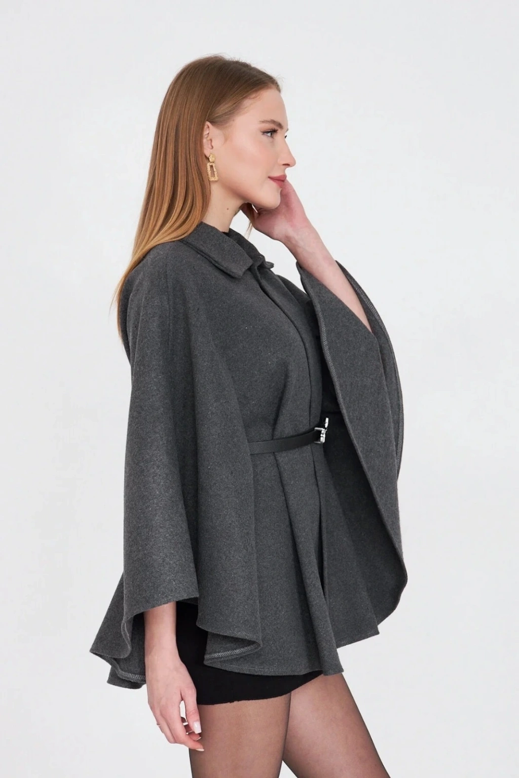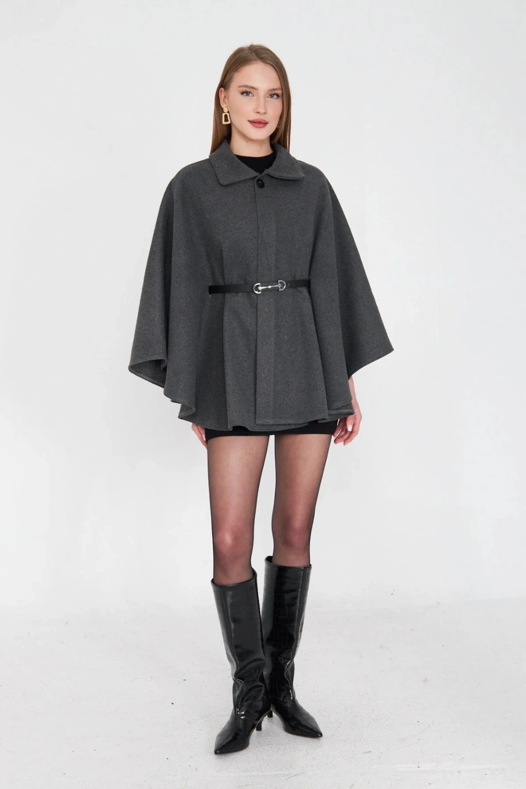 • Kemerli kaşe panço antrasit pt
