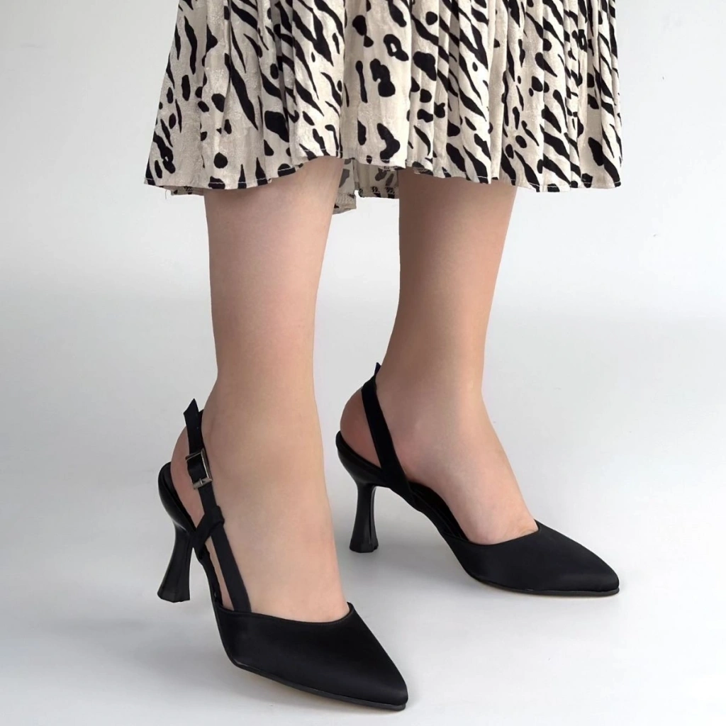 Minde Siyah Saten Topuklu Ayakkabı
