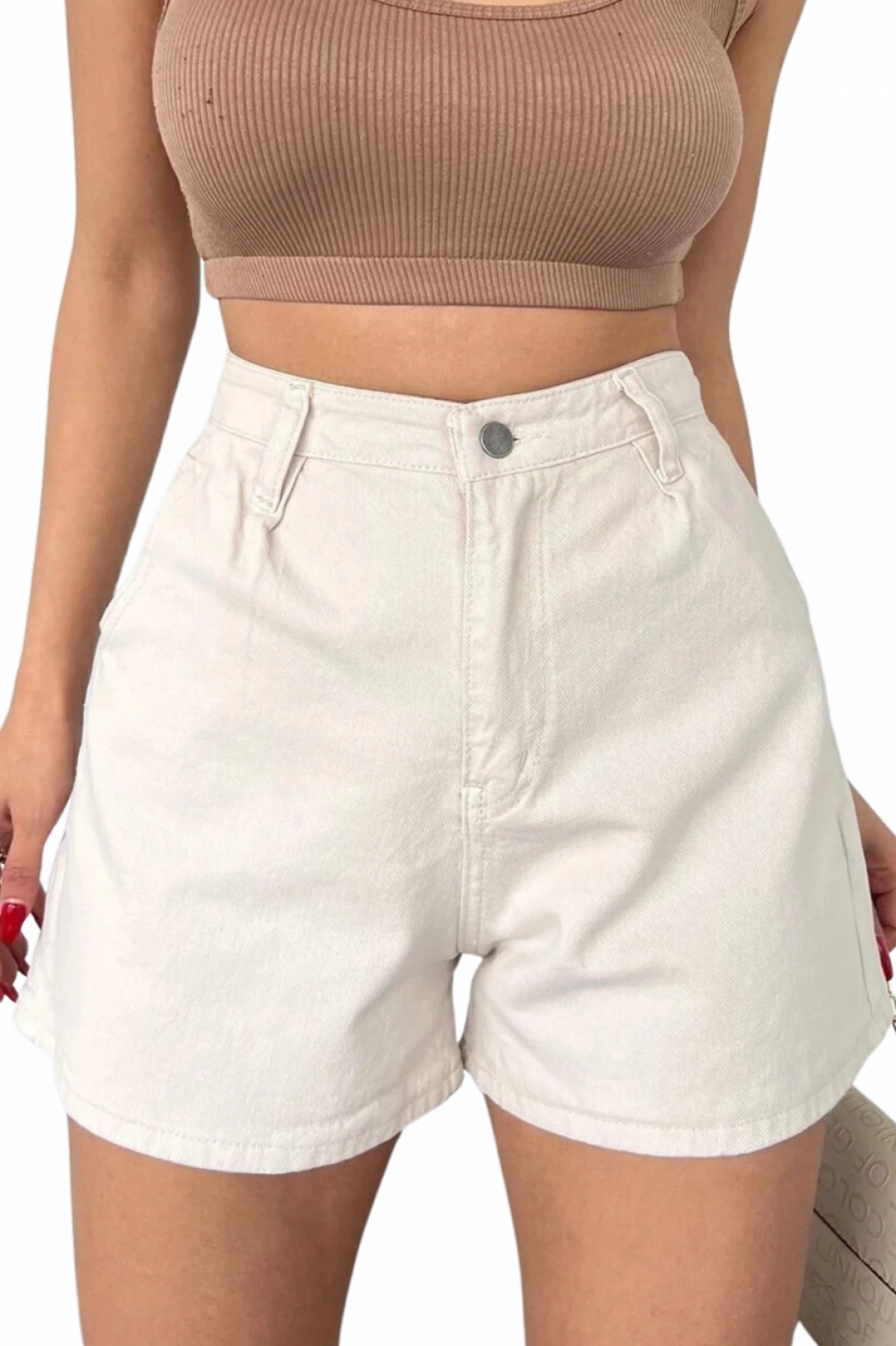 Mini Denim Şort Cepli - KREMMini Denim Şort Cepli - KREM