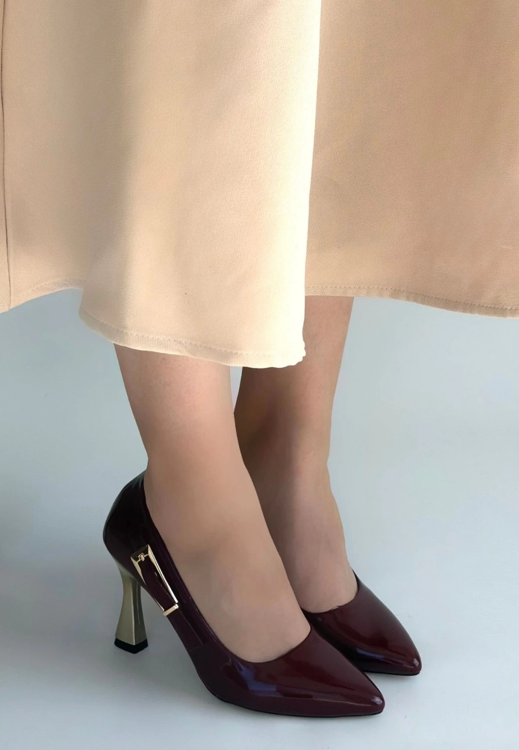 • Motya Bordo Rugan Topuklu Ayakkabı