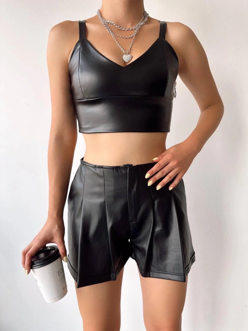 Yeni sezonun trend parçalarından pileli deri şort siyah h240053, şıklığı ve rahatlığı bir arada sunuyor.
