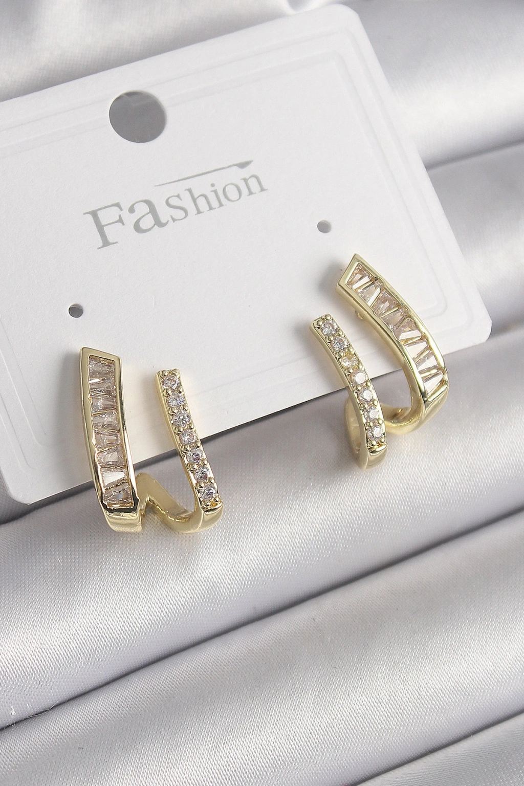 Pirinç Gold Renk Zirkon Taşlı Kadın Küpe - TJ-BKP9969