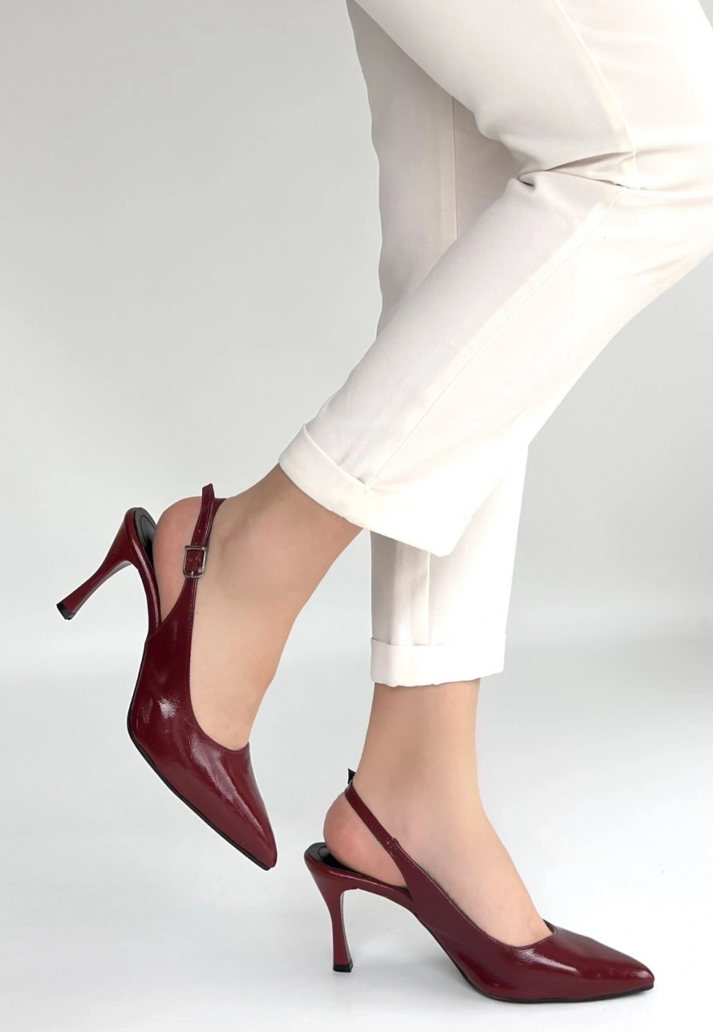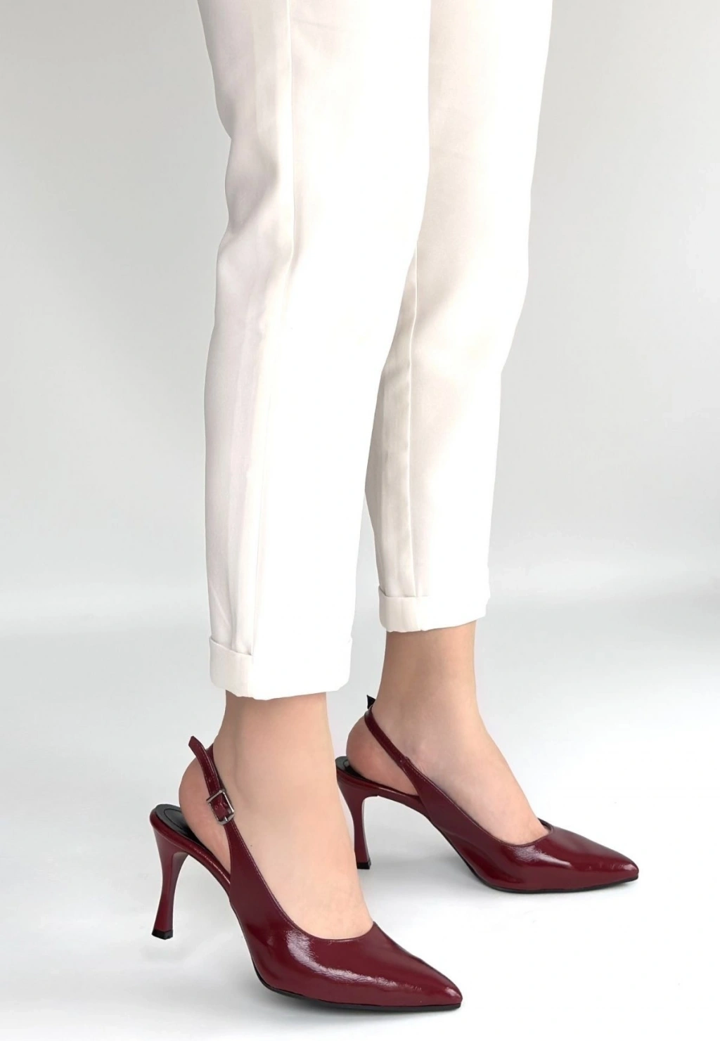• Uster Bordo Rugan Topuklu Ayakkabı